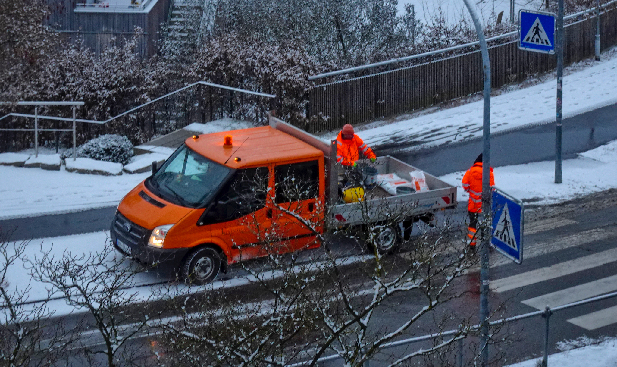 Der erste nennenswerte Schnee dieses Jahr. Am 6. Januar. Feiertag. Frühmorgens.