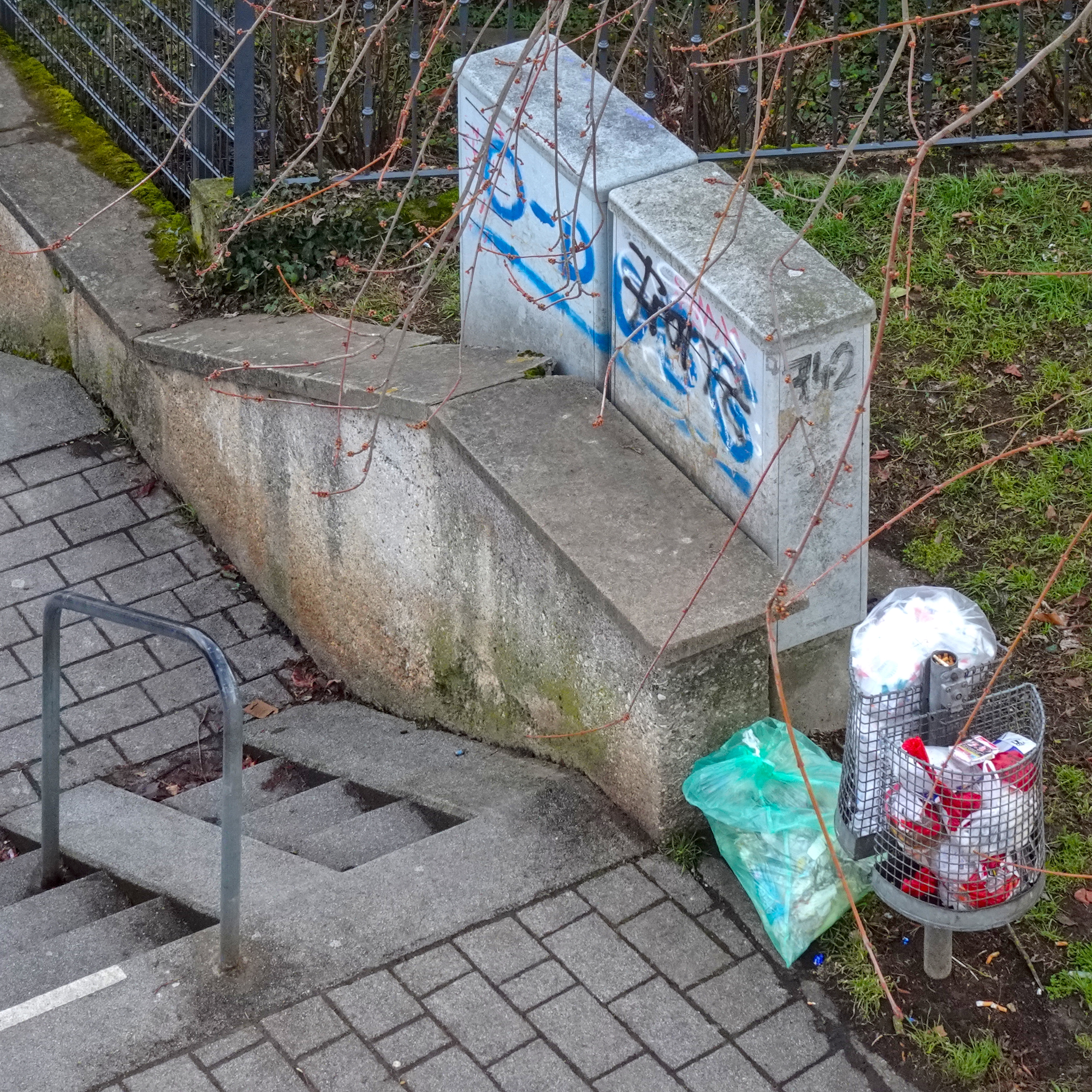 Warum die Bilder, die ich machte, so unscharf wurden, kann ich mir nicht erklären. Alle 5 wurden so wie das obige. Völlig unproffesionel. Aber links sieht man einen der weissen Müllsäcke.